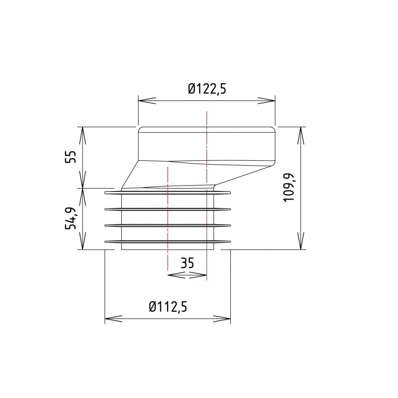 Por su forma excéntrica se adapta a las diferencias entre la salida del WC y la conexión al sistema de evacuación.