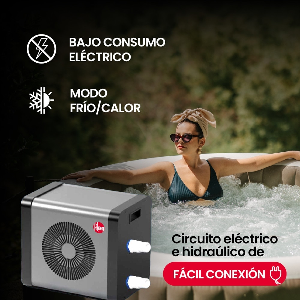 Súper práctica y fácil de usar, la Crosswind 20 M3 se instala en un abrir y cerrar de ojos – solo conéctala a un enchufe normal y a las mangueras de tu piscina. Es tan liviana y compacta que puedes moverla donde quieras, y cuando termine la temporada de piscina, guardarla sin que ocupe espacio. ¡No más excusas para no disfrutar de tu piscina! Con Rheem, tu verano será pura diversión y buenos momentos en familia.