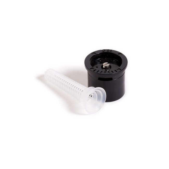 Codificadas en la parte superior por colores, para identificar rápidamente el alcance y el sector. Tornillo de ajuste del caudal y del alcance. Caudal proporcional a la superficie a regar. Filtro situado bajo la tobera de fácil acceso.