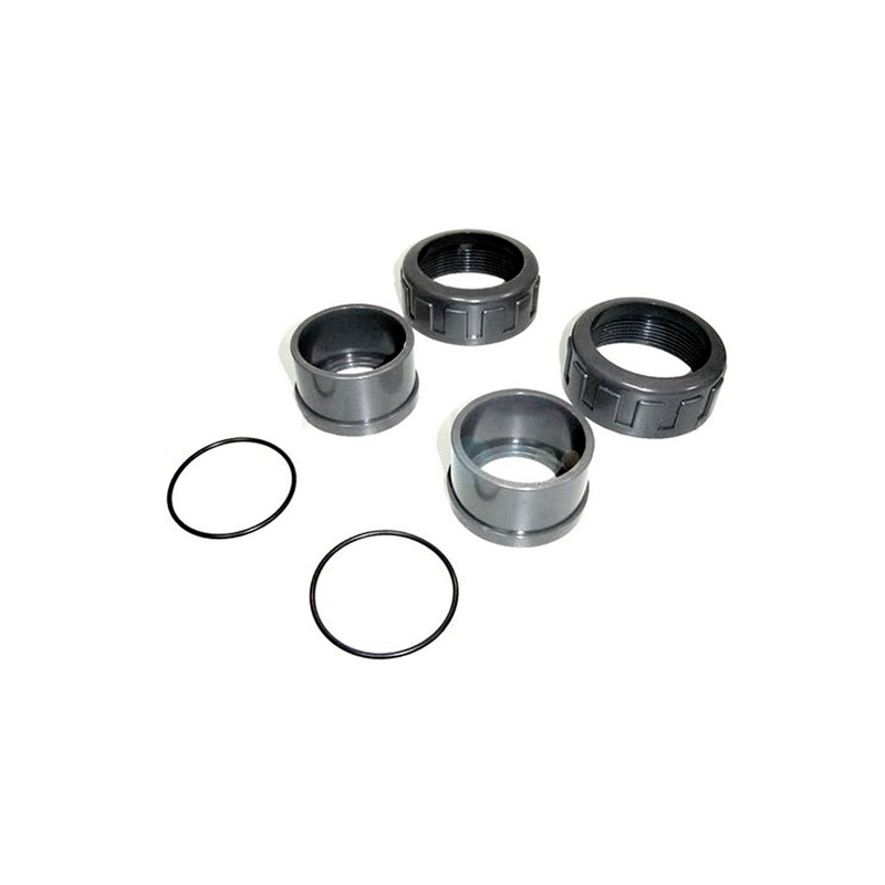 Kit de 2 unidades de los accesorios de enlace compatible con las bombas Sena y Alaska. Se incluyen 2 unidades para poder sustituir los accesorios de impulsión y los de aspiración. Incluyen junta tórica para una unión totalmente estanca libre de fugas. Material: PVC