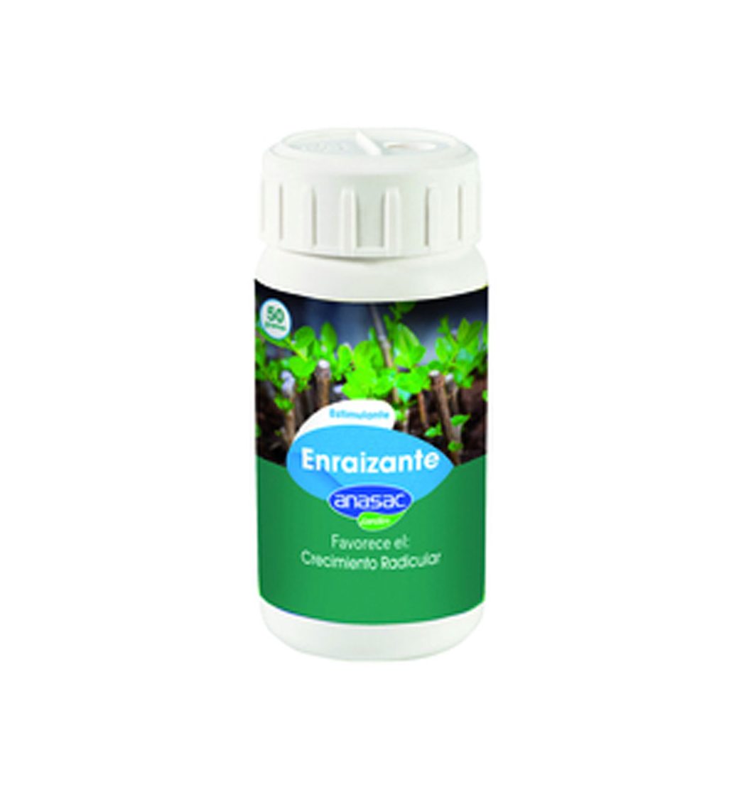 Producto hormonal que estimula el crecimiento radicular de todo tipo de esquejes y estacas; blandas, semi-duras y duras. Este producto contiene además, un fungicida para disminuir el riesgo de pudrición. Forma de uso Untar los esquejes o estacas limpios y lavados en 1 cm. de Enraizante Anasac, golpear contra el borde del envase para eliminar el exceso. Plantar evitando remover el producto. En estacas duras primero humedezca un extremo y posteriormente cubra con 3 cm. del producto No dejar el Enraizante expuesto directamente a la luz solar por tiempo prolongado.