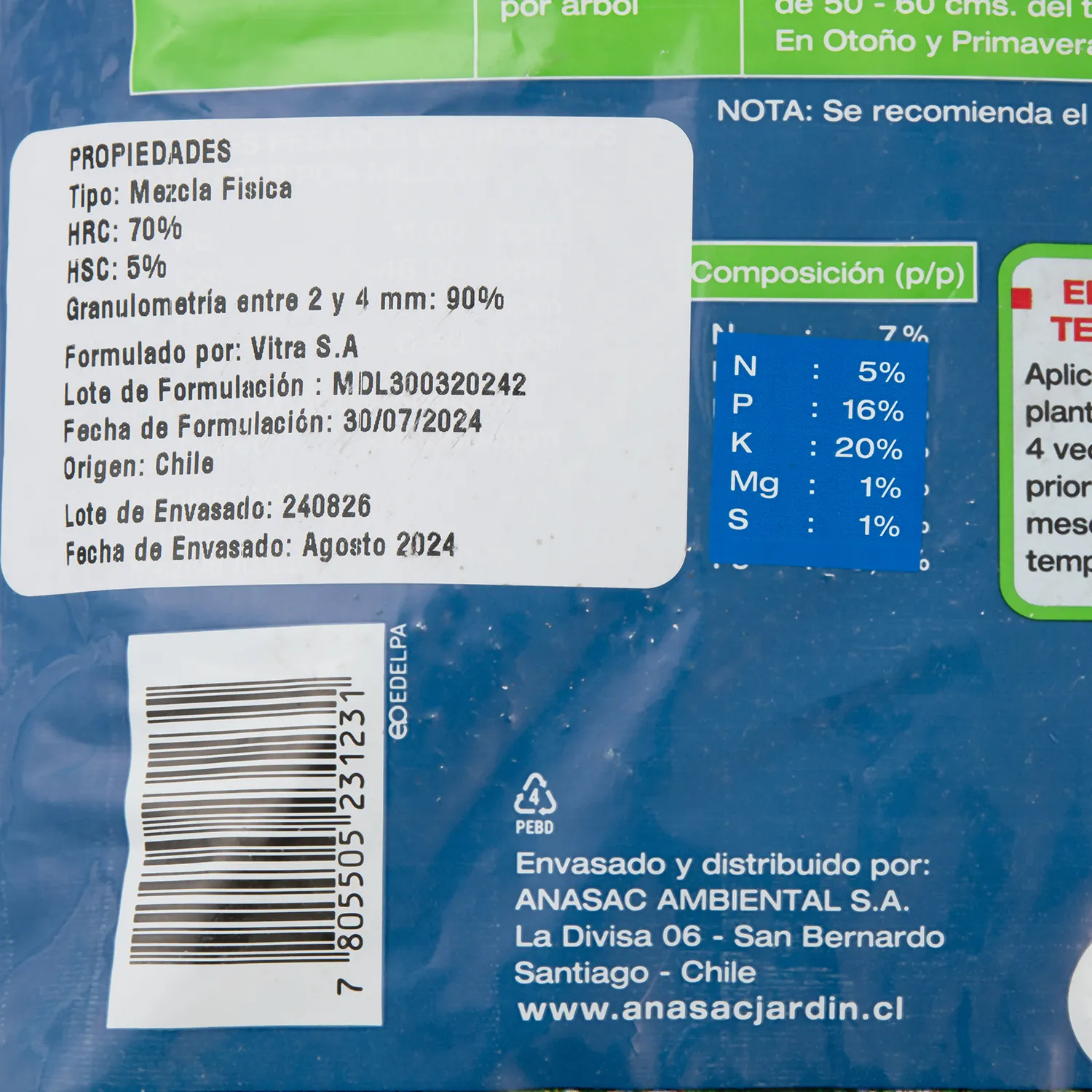 Dale vida a tu jardín con el Fertilizante Germinal de Anasac, en su presentación de 2 kg. Este fertilizante granulado, balanceado y completo, contiene todo lo necesario para que tus plantas crezcan fuertes y sanas. ¡Activa la floración de tus arbustos, frutales y plantas ornamentales con este producto de alta calidad!