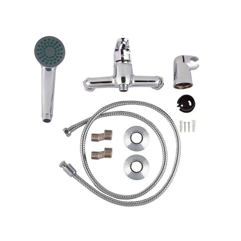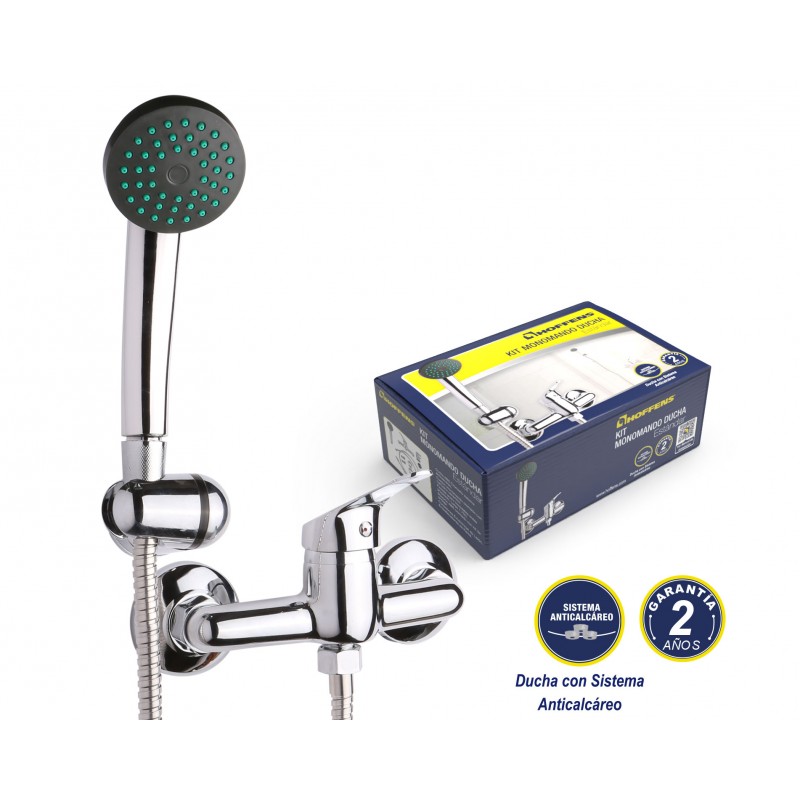 Solución completa de ducha, soporte, flexible y monomando para ducha que permite regular el caudal de agua fría y caliente, como la mezcla de ambos.