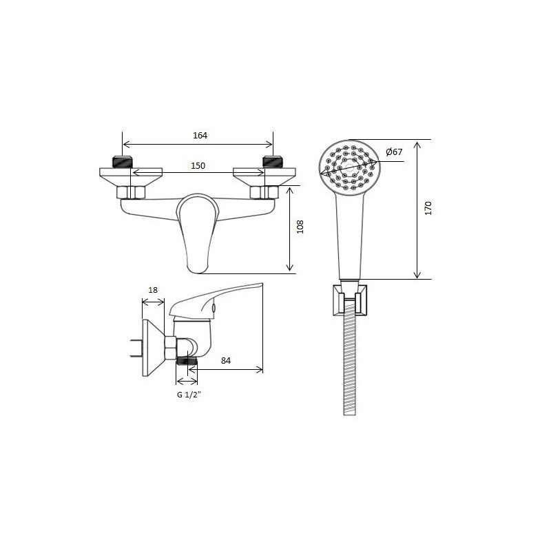 • Maneral ducha ABS cromado con sistema anticalcáreo.