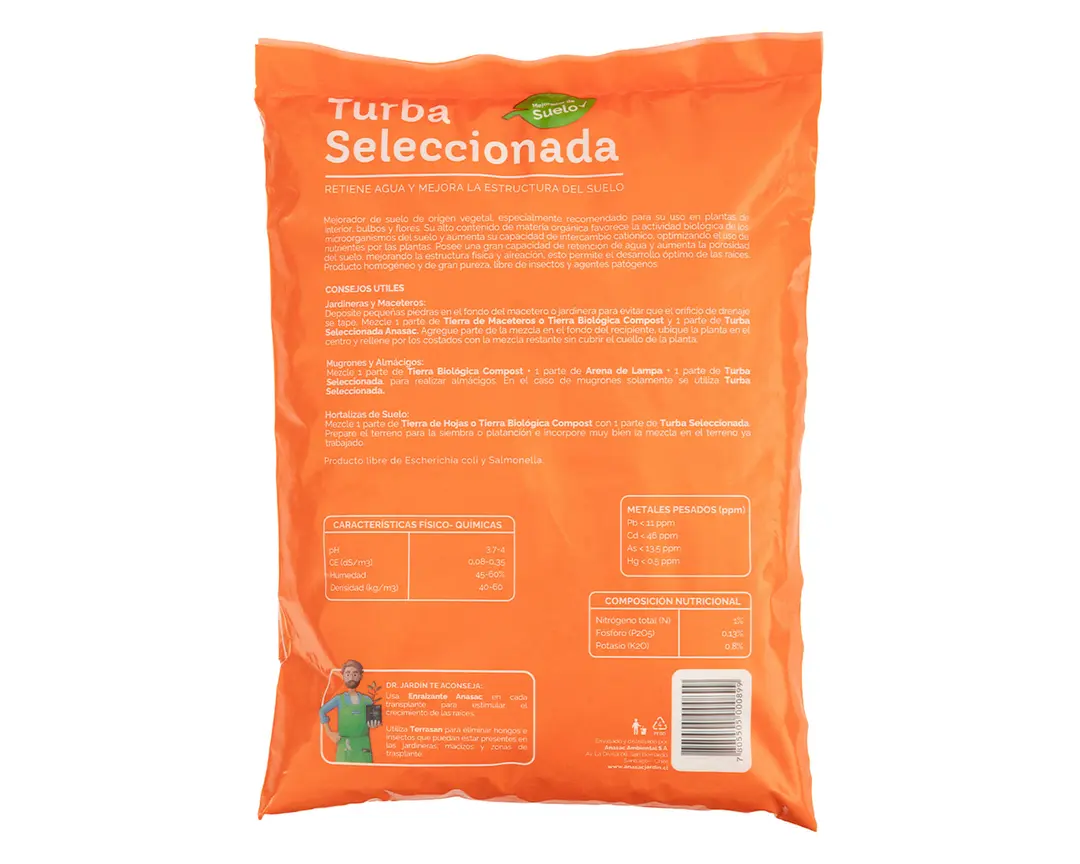 100% natural, retiene agua y mejora la estructura del suelo. Recomendado, especialmente, para uso en macetas y propagación de plantas, bulbos y flores. Contiene un alto porcentaje de materia orgánica. Mejora el desarrollo de raíces y favorece la aireación del suelo. Producto homogéneo y de gran pureza, libre de insectos y agentes patógenos.